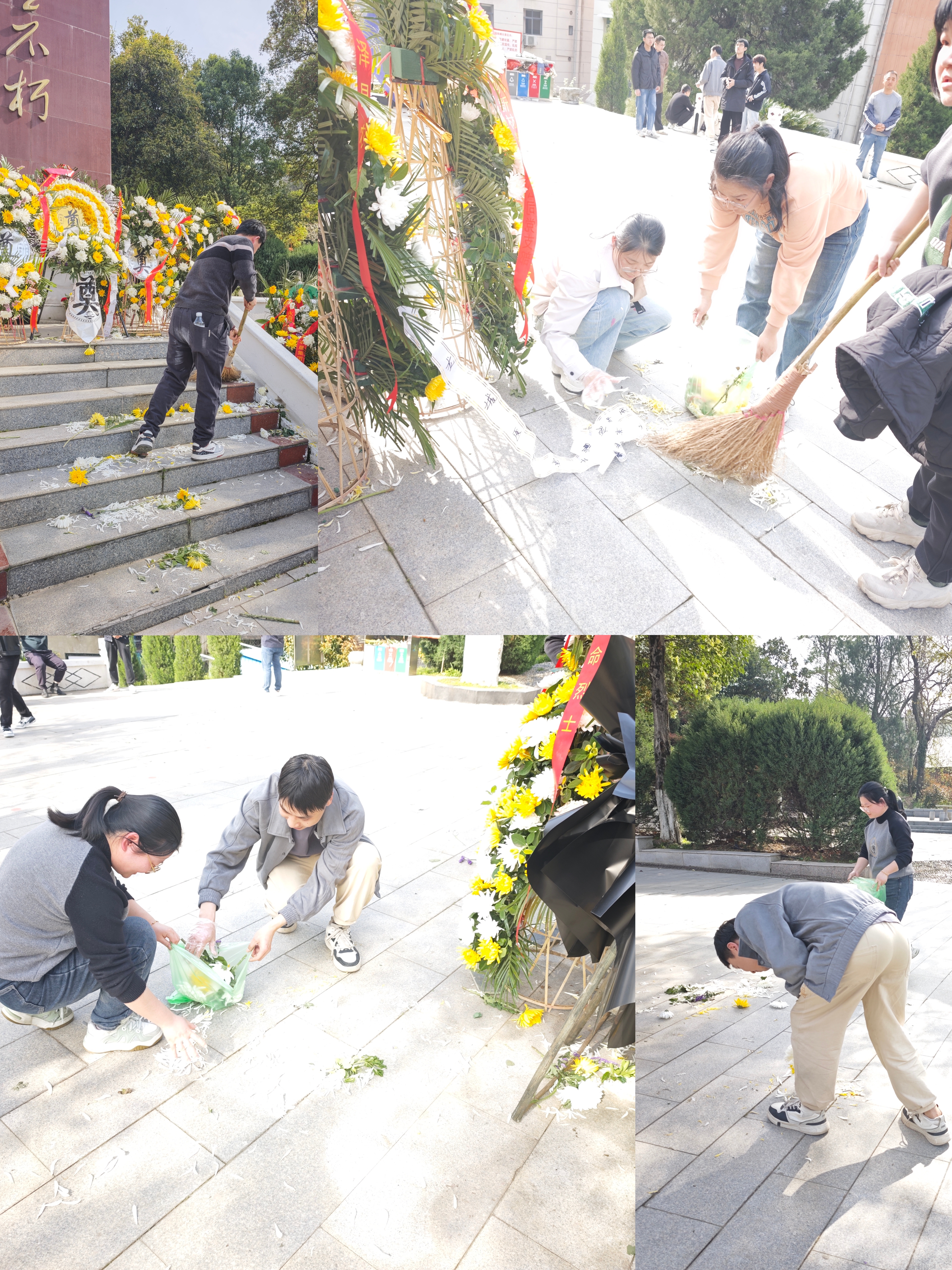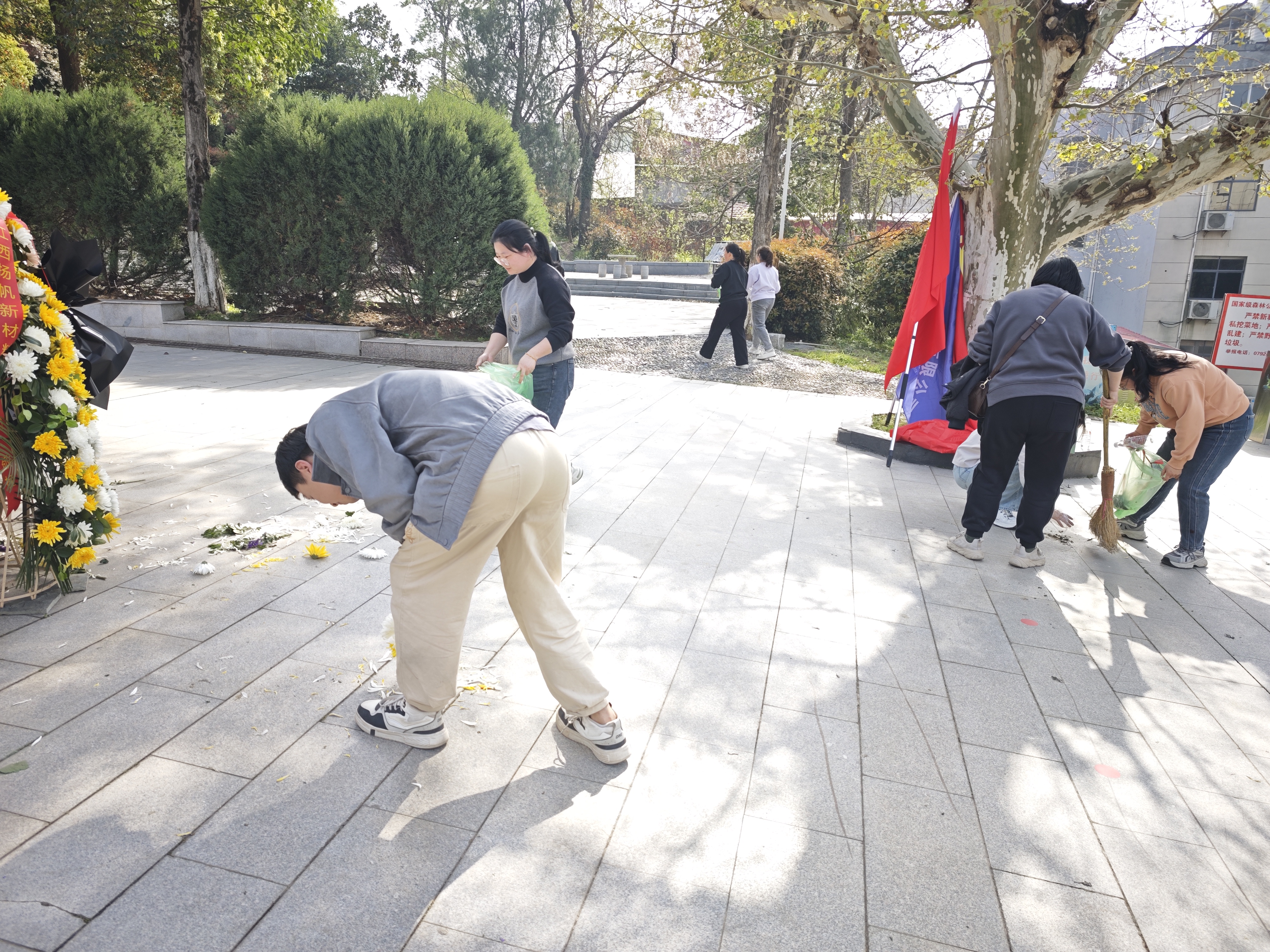 祭掃儀式結(jié)束后,大家化身“志愿守護(hù)者”,在陵園內(nèi)開展義務(wù)清掃活動(dòng)。大家手持掃把、垃圾袋,仔細(xì)清理陵園內(nèi)的落花、枯葉、煙頭等雜物,以實(shí)際行動(dòng)維護(hù)烈士陵園的整潔與莊嚴(yán)。經(jīng)過大家的勞動(dòng),陵園環(huán)境煥然一新,所有人用汗水詮釋了對(duì)革命精神的傳承與踐行。